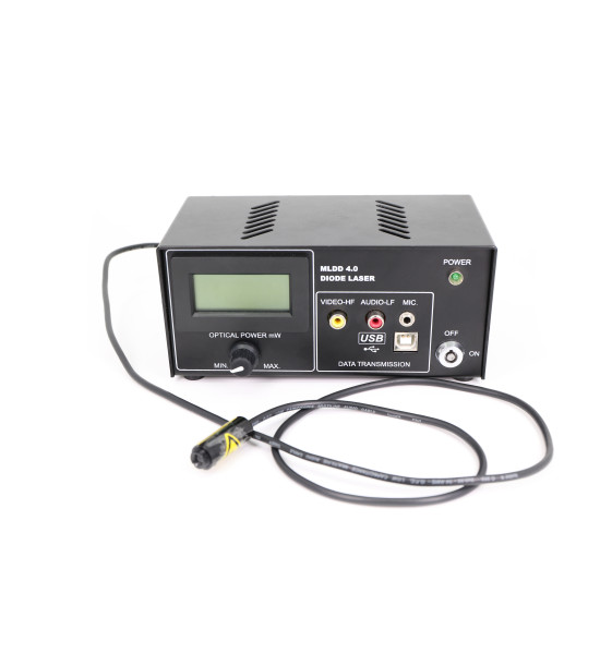 Semi-conductor laser MLDD 4.0 - (Modulated laser-diode device). The laser works with adjustable power output ranging from 0.2 to 0.99 mW (produced also in 3mW version). The current output power is immediately displayed on the LCD.