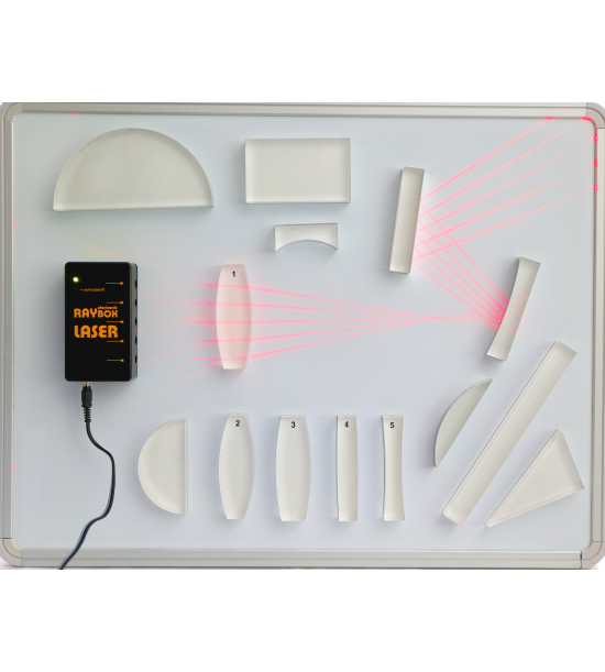 Complemented with all versions of Laser Ray Box (sold separately) the set improves the quality of teaching and offers new possibilities in comparison with the classic incandescent lamp.