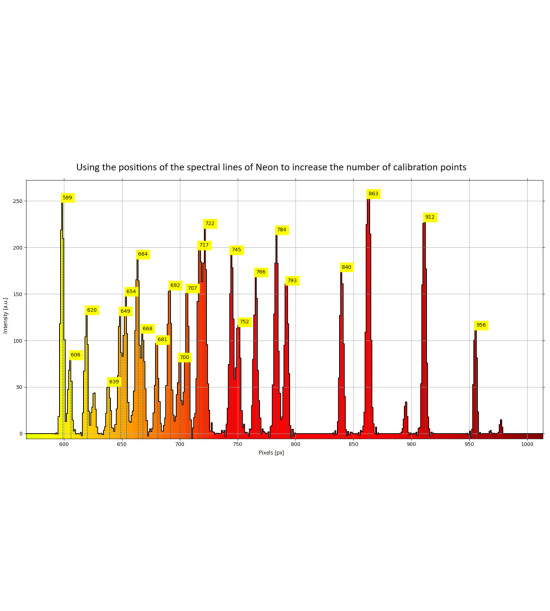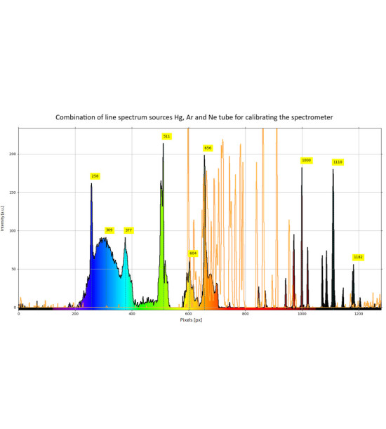 By calibrating the spectrometer Spectra using well-characterized spectral lines from mercury and neon, the instrument's accuracy and precision can be greatly improved, enabling more reliable measurements. The calibration process might be done using our freely downloadable Software Spectra V5.