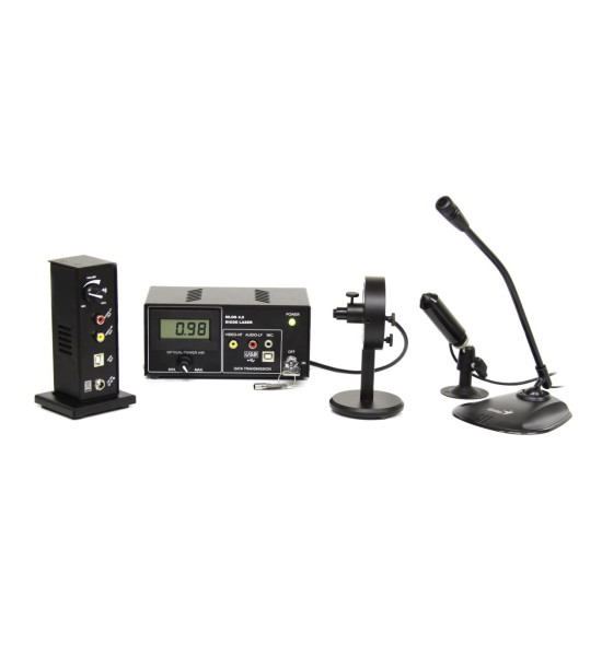 LaserCom kit allows analog (audio/video) and digital transmission (direct data transfer from PC to PC) using a laser beam. This system provides an understanding of the basic principles of optical communication. LaserCom set allows simultaneous transmission of video and audio. All components are neatly housed in a compact plastic case. The transmitter has an adjustable power output ranging from 0.2 to 0.99 mW. The current value is shown on the display.
