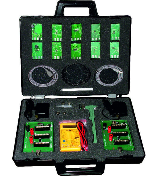 The set contains a basic transmitter and receiver boards with the possibility to connect the following modules: