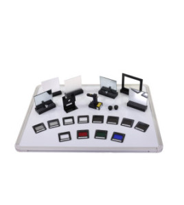 The set also contains a special holder for fiber optics, a universal AOV meter device, equipment for Tyndall´s light guiding experiment, force plates, bending cylinders, special emeries for fiber preparation, jacketed and unjacketed fibers, power sources and a user guide with a set of examples.