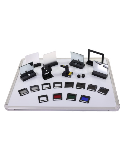 A Laser Optical Set is a collection of optical and mechanical elements that have been designed to make the observation and easy understanding of physical principles of wave optics possible. By such means the usual way of theoretical teaching may be raised to a higher level. It helps in the demonstration of wave optics principles such as interference, diffraction, linear polarization of light, or hologram reconstruction. All components contain a magnetic mounting base. The set is packed in a plastic carry case designated for safe transport and convenient storage.